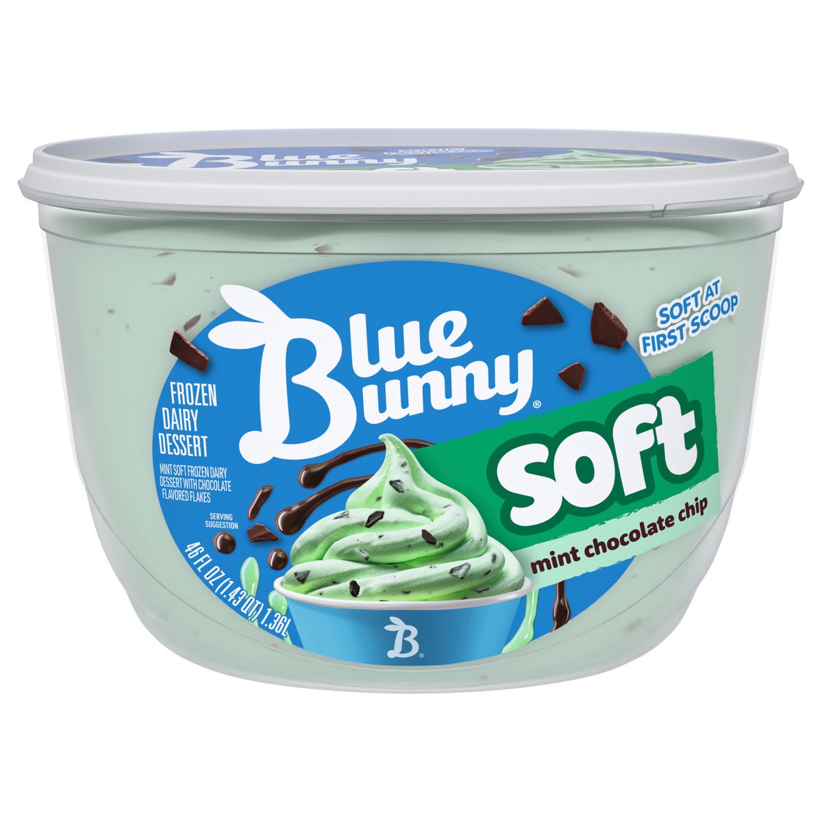 Turn any ice cream lover into a big softie with Blue Bunny Soft Mint Chocolate Chip Frozen Dairy Dessert. Cold and creamy, this frozen mint chocolate chip treat is a new take on the soft serve experie…