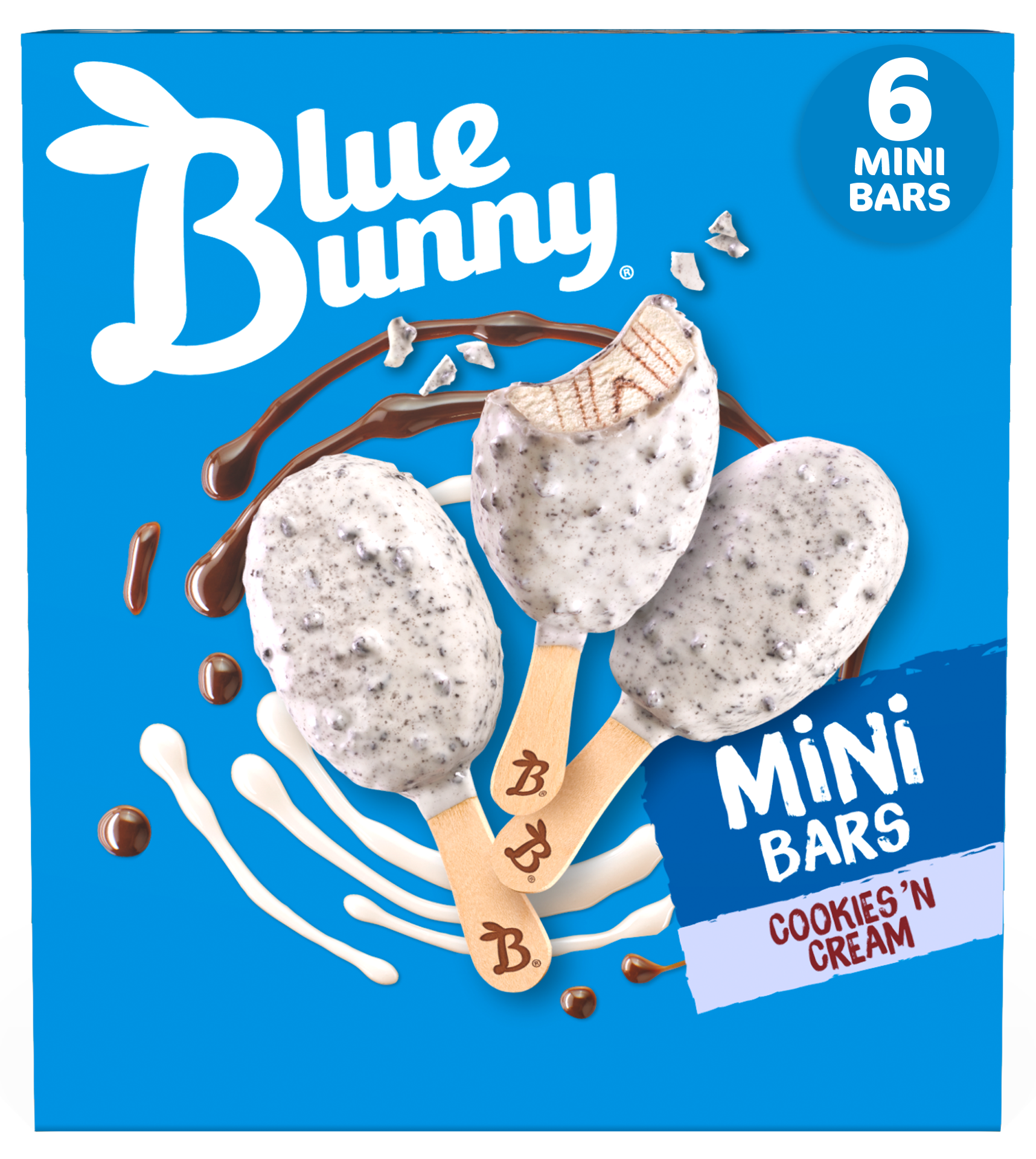 Blue Bunny Mini Bars Cookies and Cream Crunch Frozen Dairy Desserts are mini in size and mighty in crunch. Sweet cream flavored frozen dairy dessert is swirled with fudge and dipped in a layer of whit…