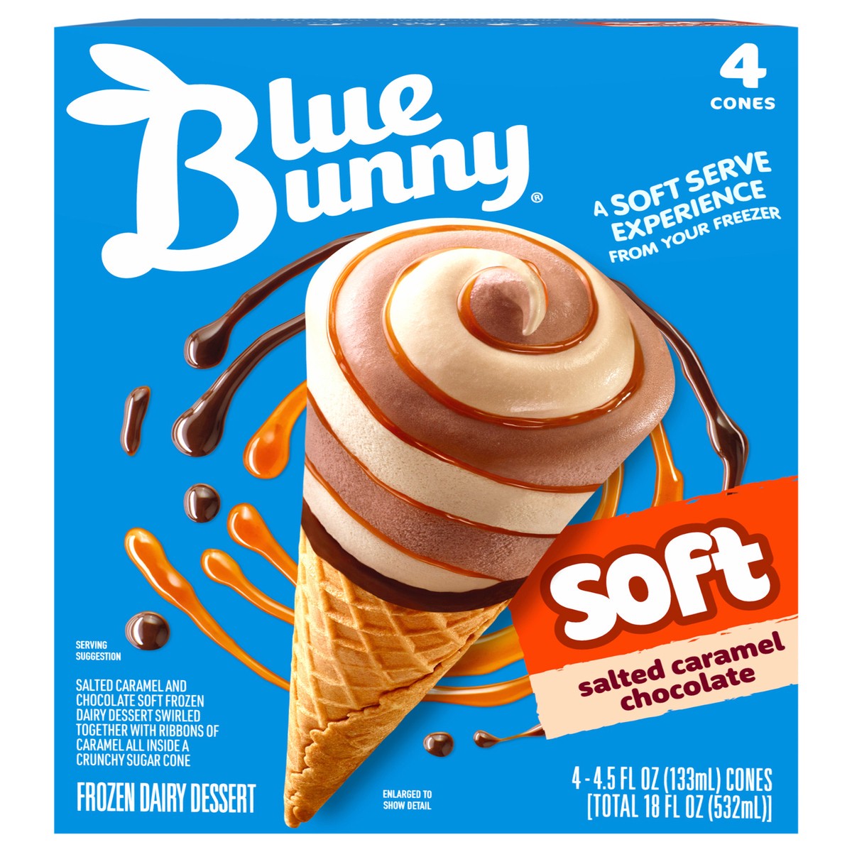 Taste the fun twist on soft serve with Blue Bunny Salted Caramel Chocolate Twist Cones. Salted caramel and soft chocolate frozen desserts are twisted all the way to the bottom and swirled with ribbons…