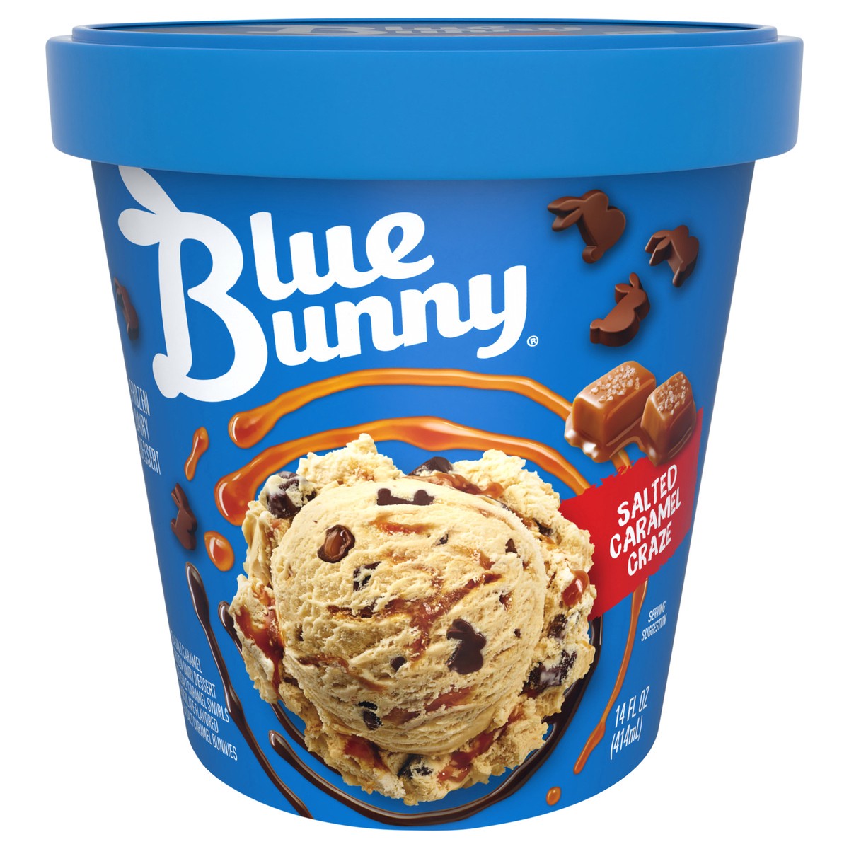 Blue Bunny Salted Caramel Craze is fun in every spoonful. This signature flavor has all the good stuff in one container. Made from simple ingredients and natural flavorings, our frozen deserts are pac…