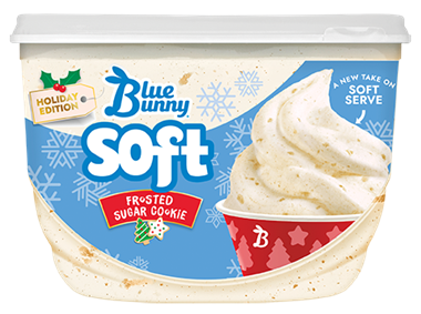 Celebrate the holiday season and get soft served with limited edition Blue Bunny Soft Frosted Sugar Cookie. Sugar Cookie lovers and soft serve lovers alike will rejoice with this elevated soft serve e…