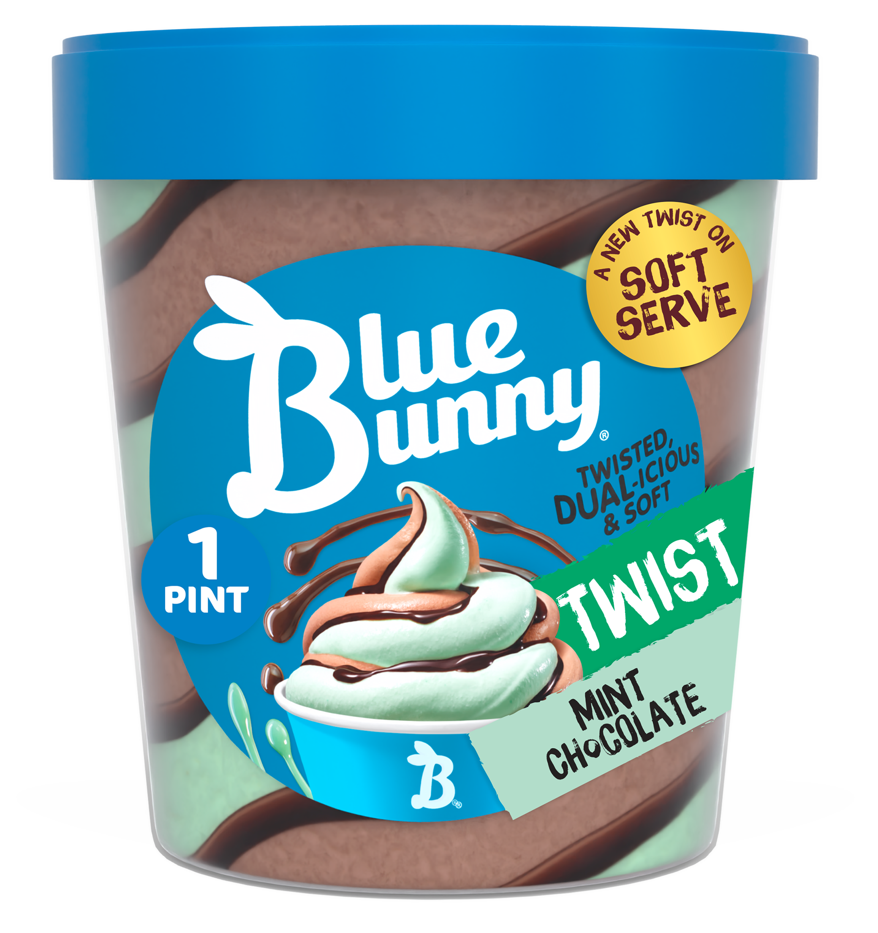 Blue Bunny Twist Pints swirl together two delicious soft serve flavors and a gooey revel for a new twist on soft serve. This multi-sensorial experience swirls mint chocolate twist soft frozen dairy de…