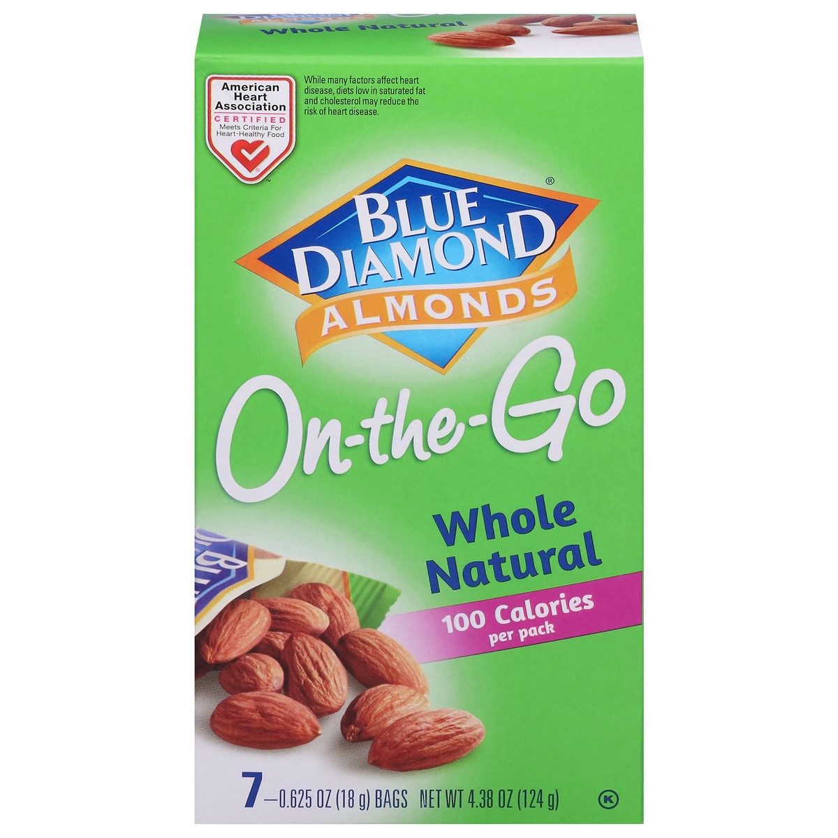 Refuel with Blue Diamond On-the-Go Whole Natural Almonds, seven 0.625 oz bags. Eating almonds as a part of your healthy lifestyle provides you with a satisfying snack that fills you up with fewer calo…