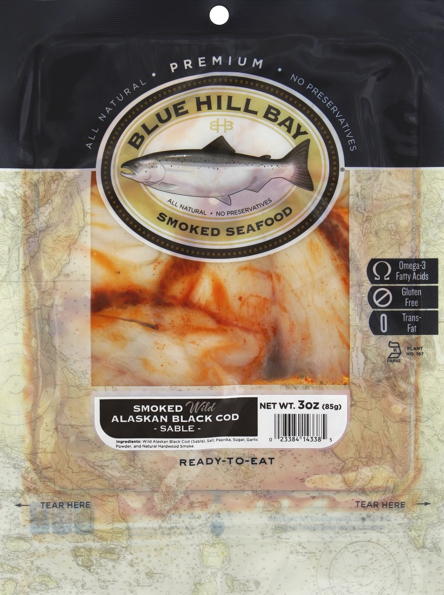 Sable. All natural. Smoked seafood. Premium. No preservatives. Omega-3 fatty acids. Gluten free. 0 trans fat. Ready-to-eat. www.bluehillbay.com. Since its inception in 2000, the Blue Hill Bay line has…