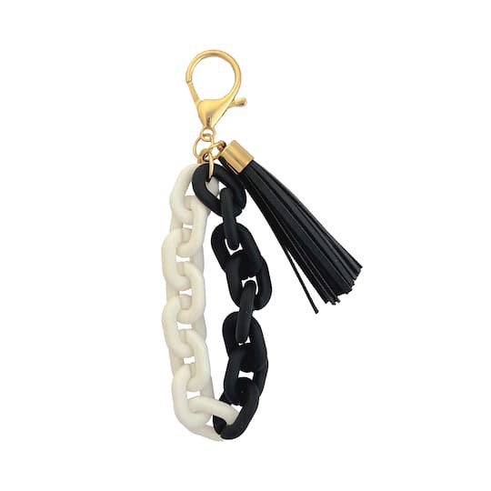 Find the Blue Moon Studio Black & White Chain Link Bag Charm with Tassel at Michaels. With a generously-sized lobster clasp that lets you easily attach it to a purse or backpack, this loop of black an…
