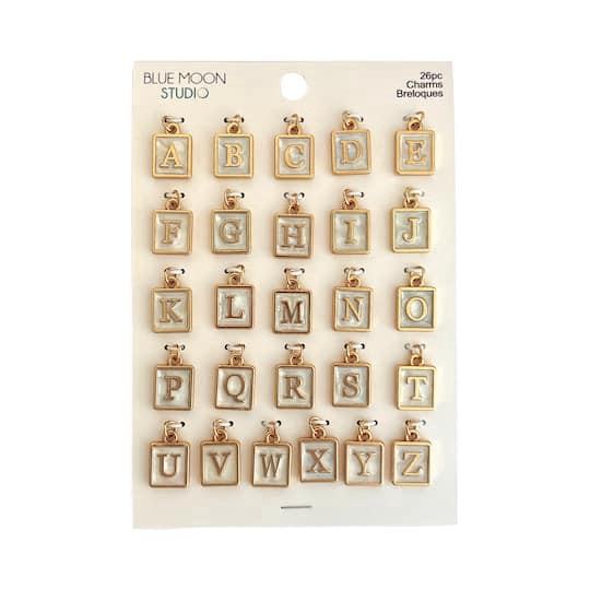Buy the Blue Moon Studio Square Gold-Colored Alphabet Charm Set at Michaels. Featuring a cream enameled background and gold-colored letters, this alphabet charm set contains all 26 letters. You can us…