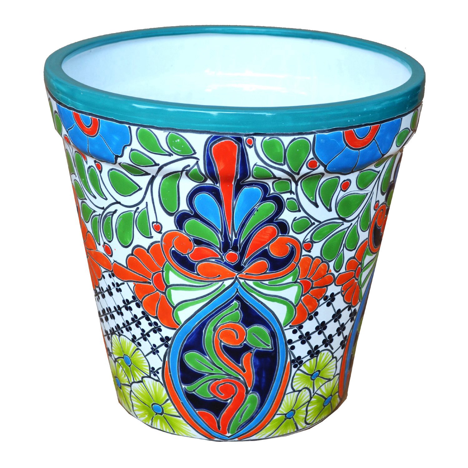 slide 1 of 1, Blue Orange Pottery Cholula Vaso, 13 x 12.5 in