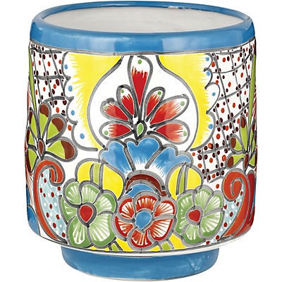 Blue Orange Pottery Cylinder Talavera Planter - Turquoise