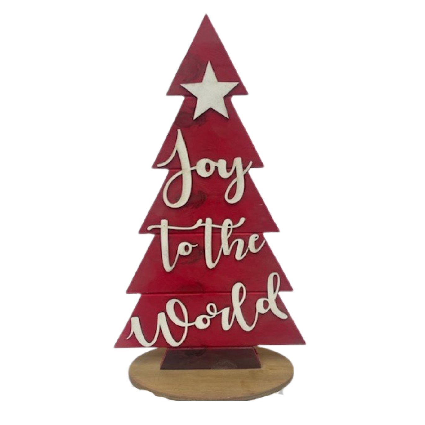 Blue Orange Pottery Joy To The World Wood Christmas Tree