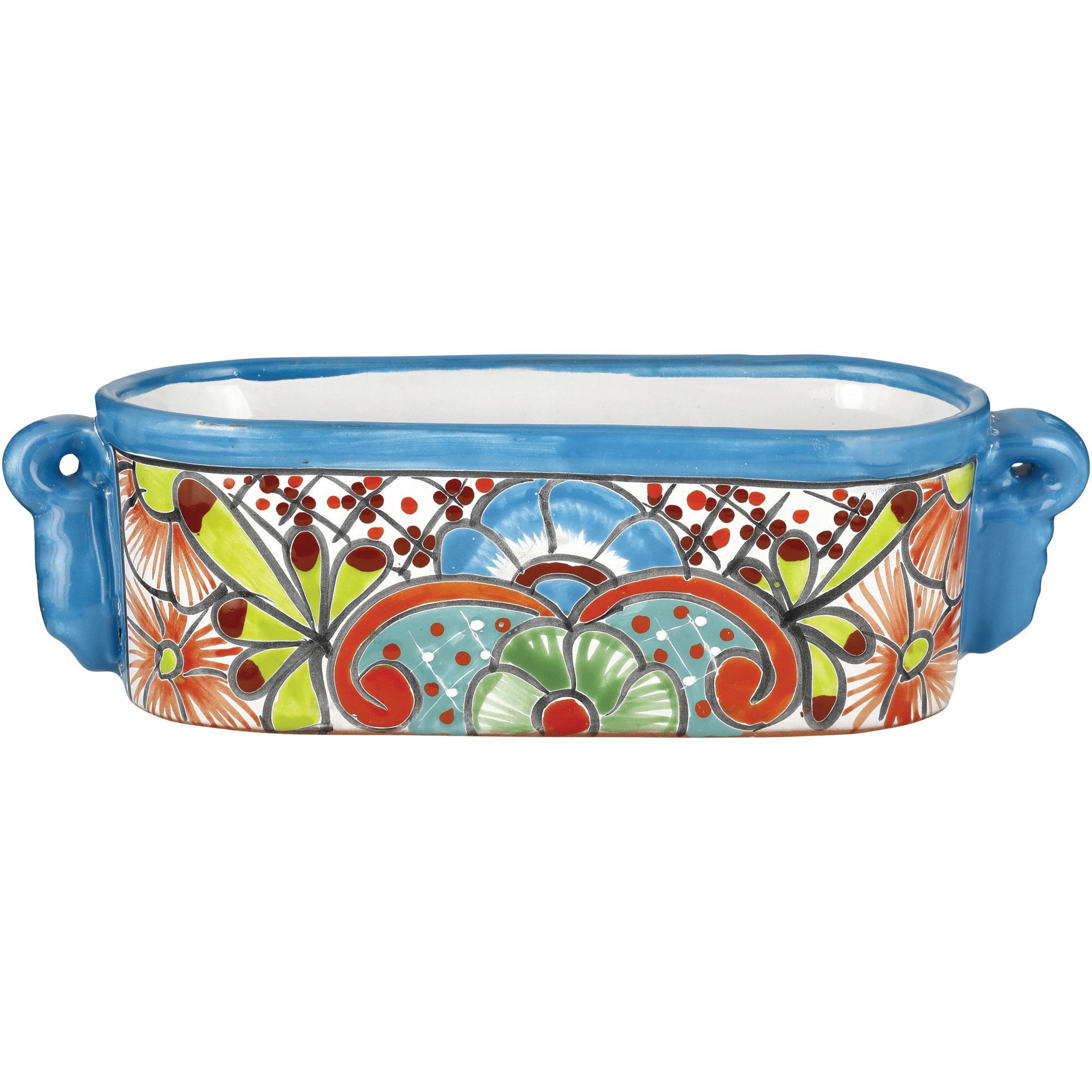 Blue Orange Pottery Long Rim Rectangular Talavera Planter - Turquoise