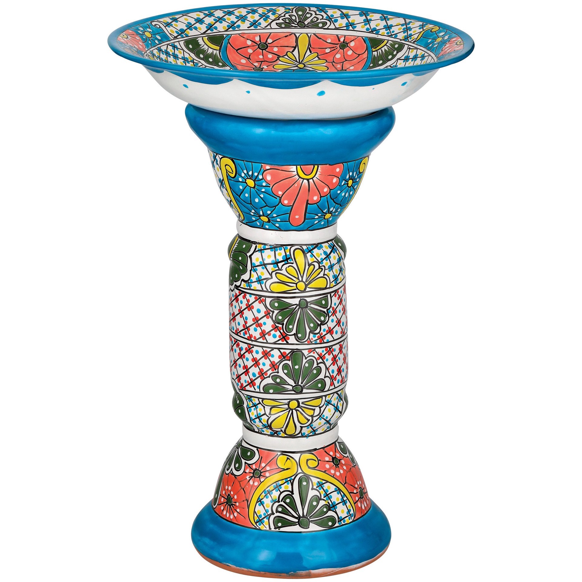 Blue Orange Pottery Talavera Fiesta Birdbath, Each