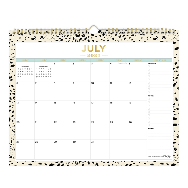 slide 3 of 3, Blue Sky 2025-2026 Day Designer Monthly Wall Calendar, 15"" x 12"", Snow Leopard, July 2025 To June 2026, 151634, 1 ct