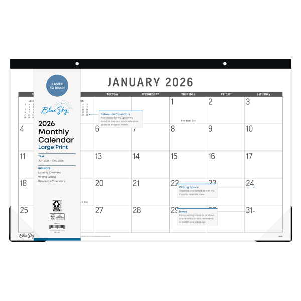 slide 2 of 3, Blue Sky 2026 Blue Sky Monthly Desk Pad Planning Calendar, 17"" x 11"", Large Print, January To December, 152698, 1 ct