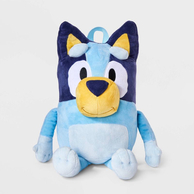 Step out for fun with the Kids' Bluey Plush Backpack in Blue. Perfect for little fans of the iconic character, this backpack features a soft and cuddly microplush fabric in the shape of Bluey himself.…