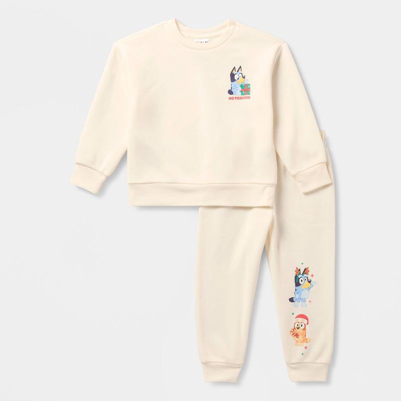 Toddler 2pc Bluey Christmas Fleece Sweatshirt and Joggers Set - Off-White 18M