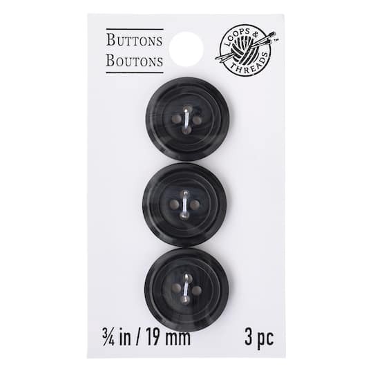 These lovely buttons, made from 100% polyester, would make wonderful embellishments for your next project as well as perfect replacements of old or lost buttons. Black. 3/4". 3 buttons. Not intended f…