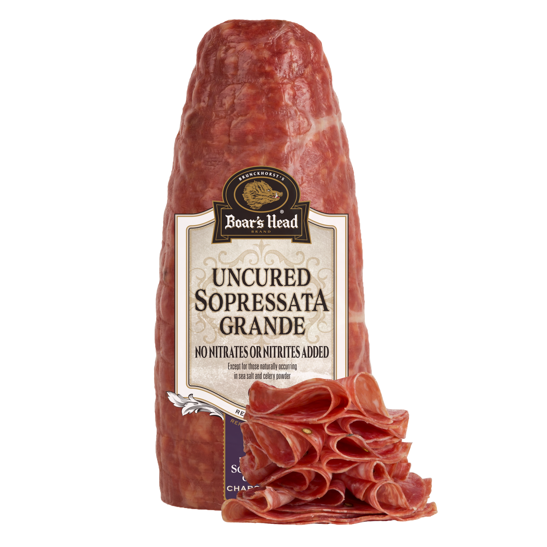 An authentic blend of hand-trimmed, coarsely chopped pork with savory spices, crafted and naturally aged in the Old World tradition. Boar's Head Sopressata is an Italian culinary classic with a rich, …