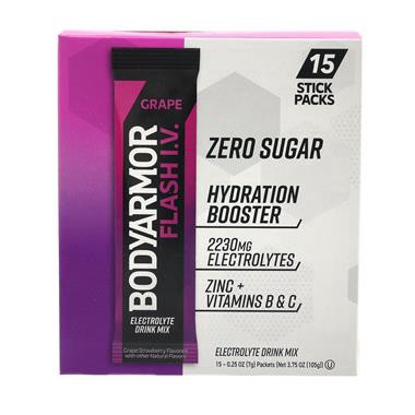 When staying hydrated is non-negotiable, BODYARMOR Flash I.V. Grape electrolyte powders are what you need for an easy, on-the-go hydration boost. Just pour a powder hydration booster into your water b…
