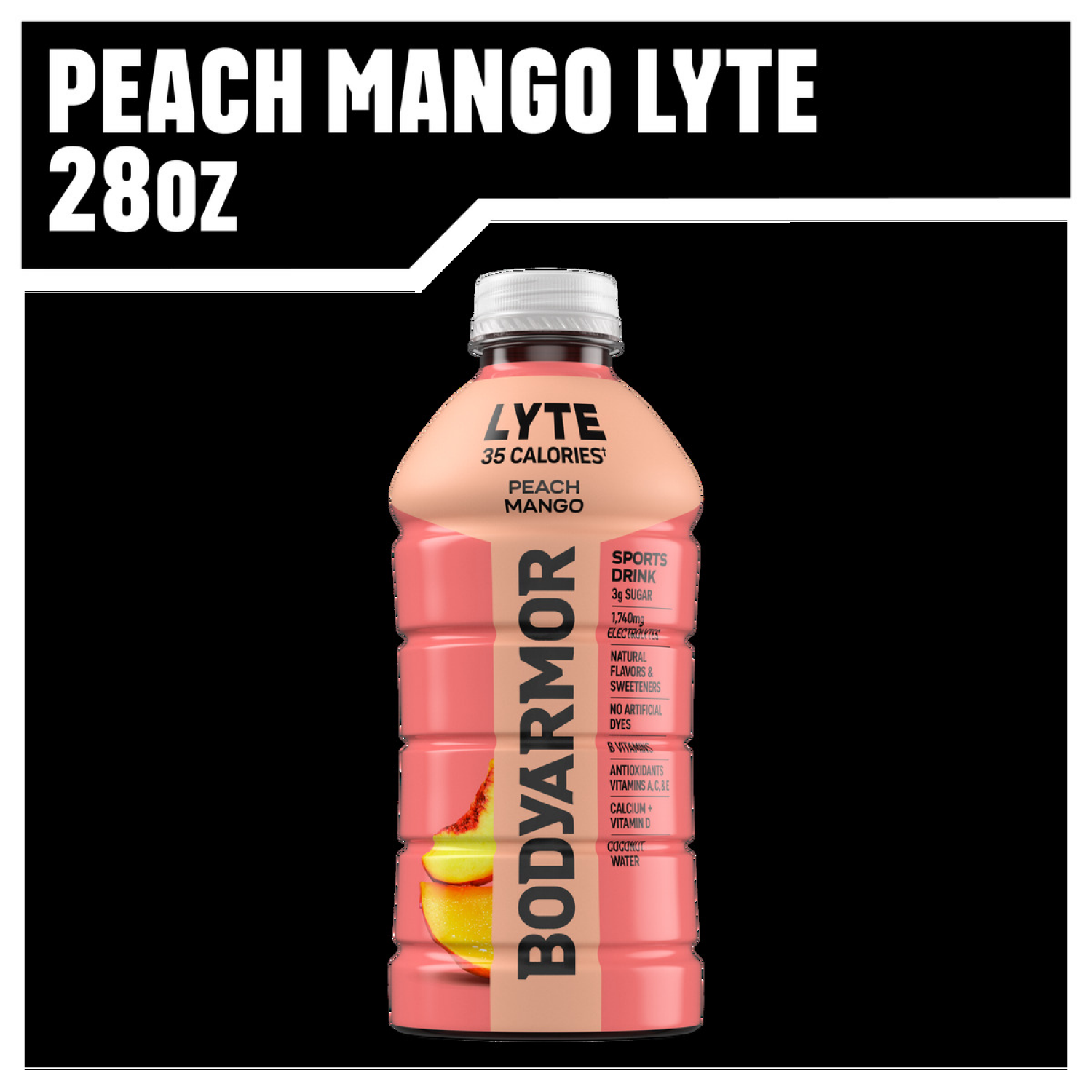 BODYARMOR Lyte Peach Mango Electrolyte Sports Drink, 28 fl oz Bottle