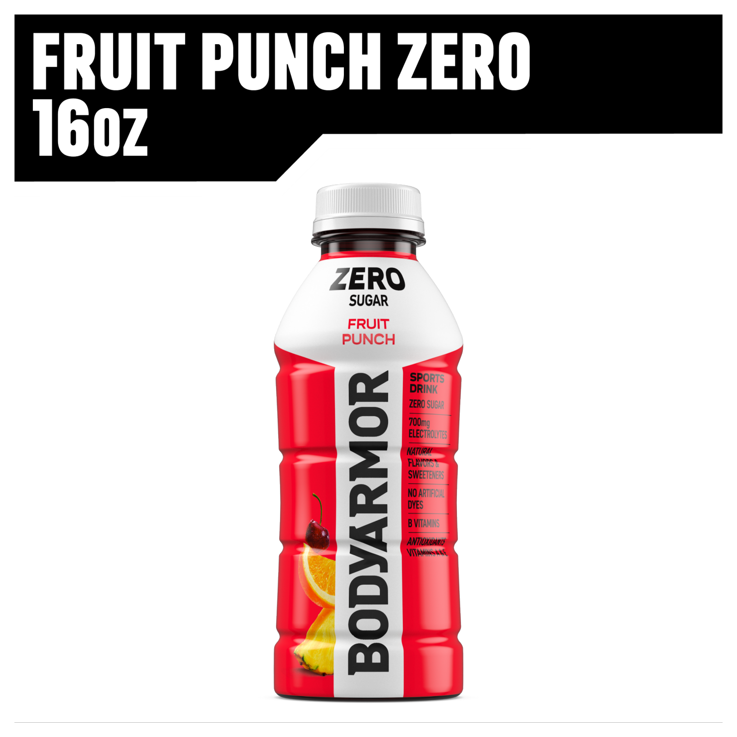 BODYARMOR Zero Sugar Sports Drink Fruit Punch. This sports drink provides real hydration with zero sugar and zero grams of carbs. Whether you're preparing for a workout, pushing through a tough traini…
