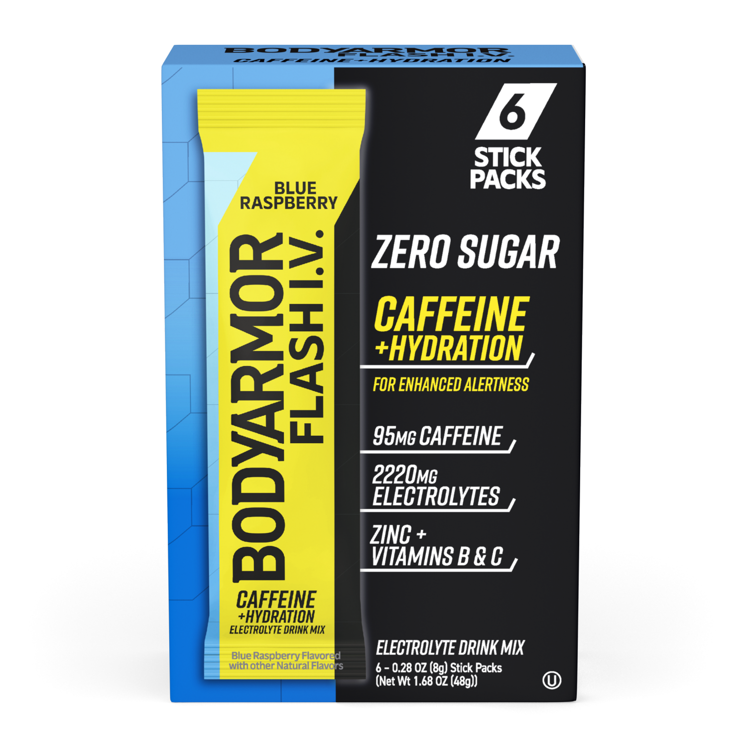 When staying hydrated is non-negotiable, BODYARMOR Flash I.V. Zero Sugar Blue Raspberry electrolyte powders are what you need for an easy, on-the-go hydration boost. Just pour a powder hydration boost…
