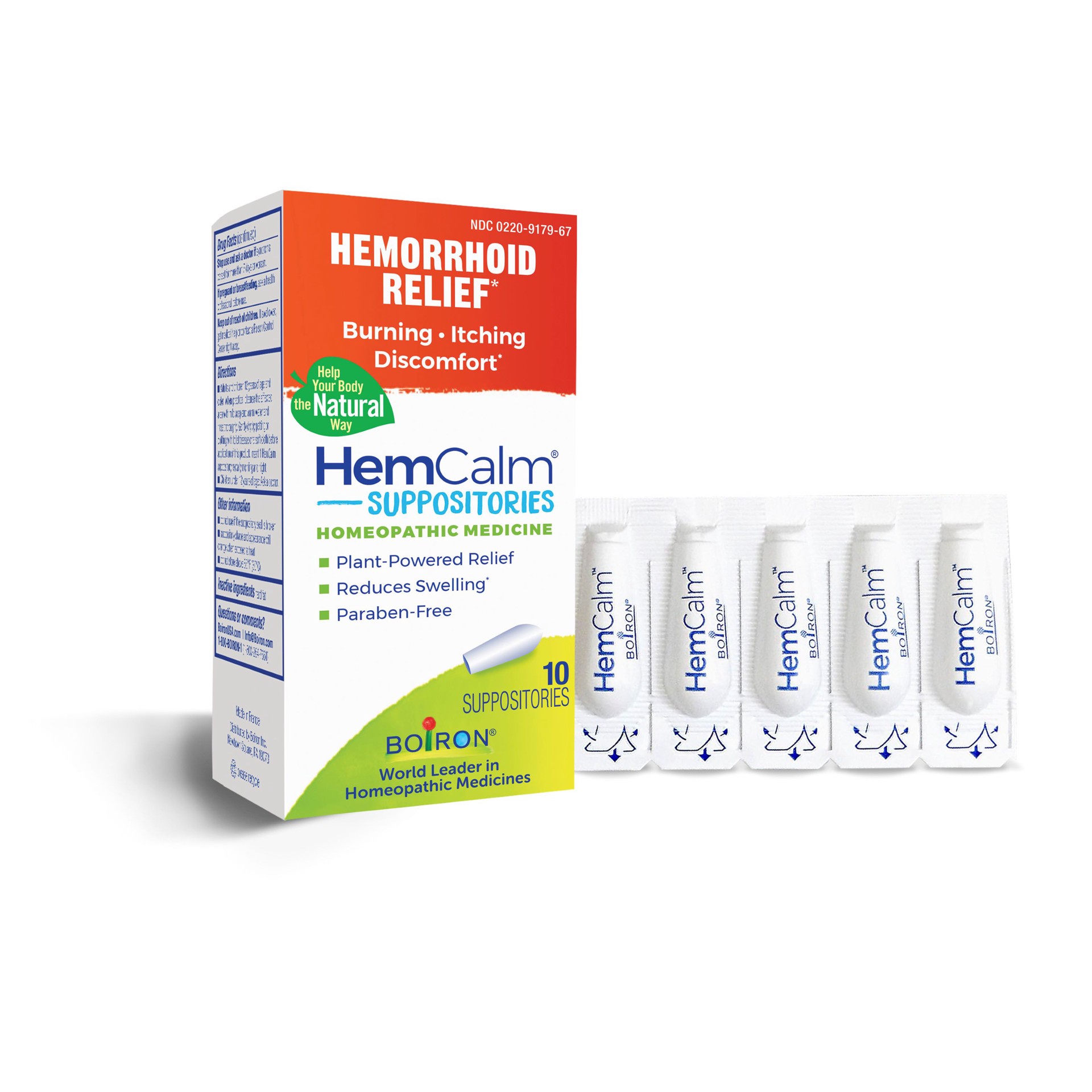 Boiron HemCalm Suppositories are made with plant-based active ingredients that target internal hemorrhoids. They help reduce swelling while relieving symptoms like burning, itching, pain, and discomfo…