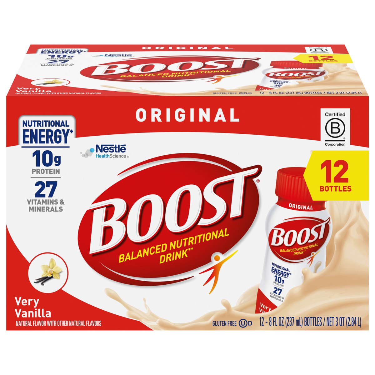 BOOST Original Very Vanilla Balanced Nutritional Drink is designed to provide NUTRITIONAL ENERGY with 240 nutrient-rich calories and B-vitamins to help convert food to energy. Plus, it has 10 g high-q…