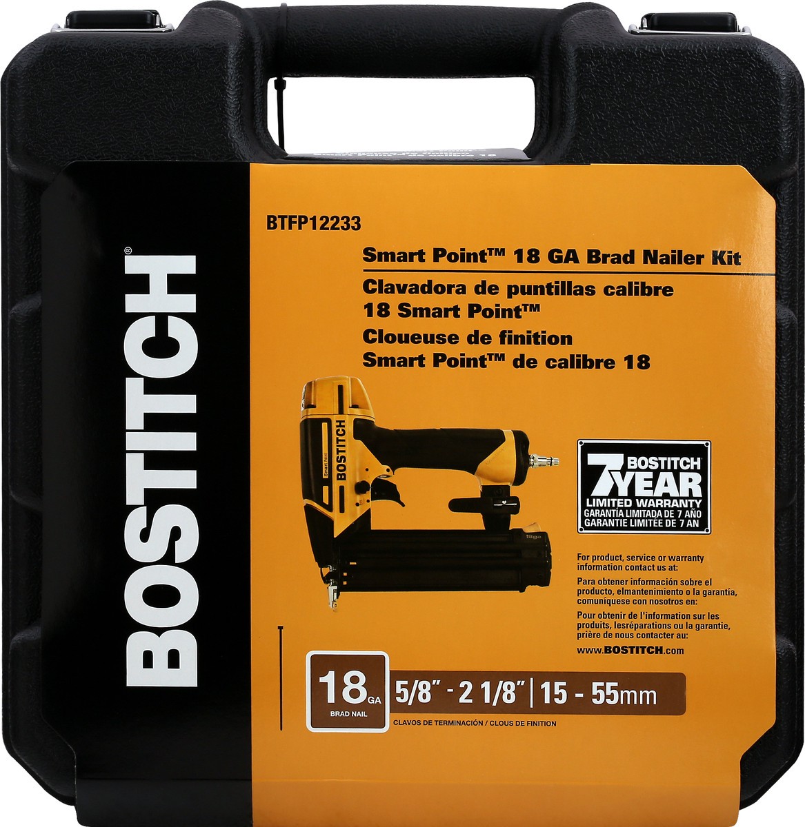 18 GA Brad Nail. 5/8 inch - 2 1/8 inch. 15 - 55 mm. Selectable trigger system convertsfrom sequential to contact operation. Tool-free jam release mechanism for easy nail removal. Smart Point technolog…