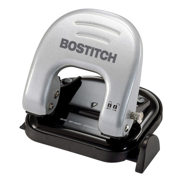 BOSTITCH Ez Squeeze Two-Hole Punch, 20 Sheet Capacity, Black/Gray