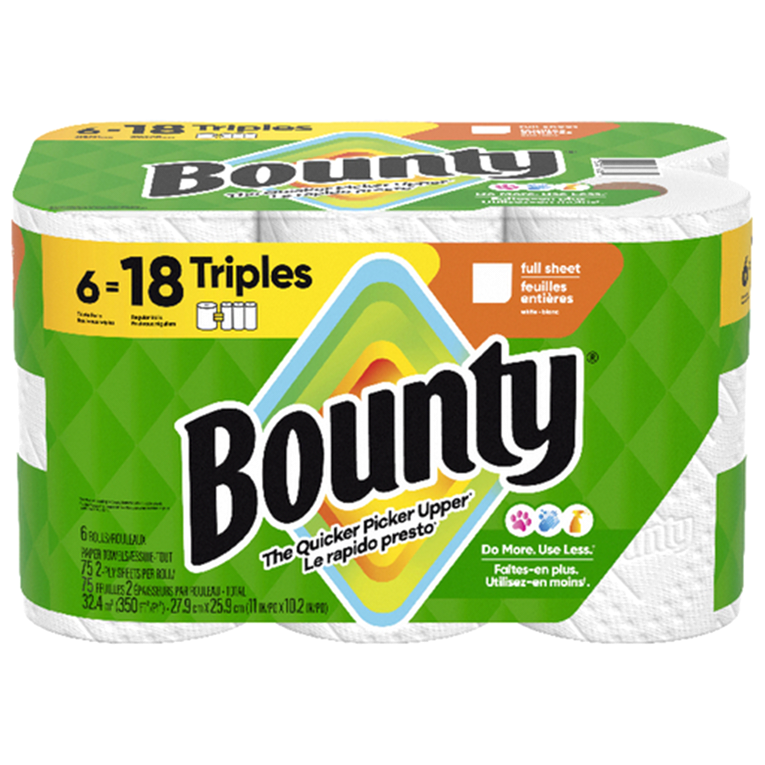 Bounty Paper Towels are 2x more absorbent, so you can clean up messes quicker and use less than the leading ordinary brand. Each sheet has a Durable Diamond Texture to tackle anything from everyday sp…