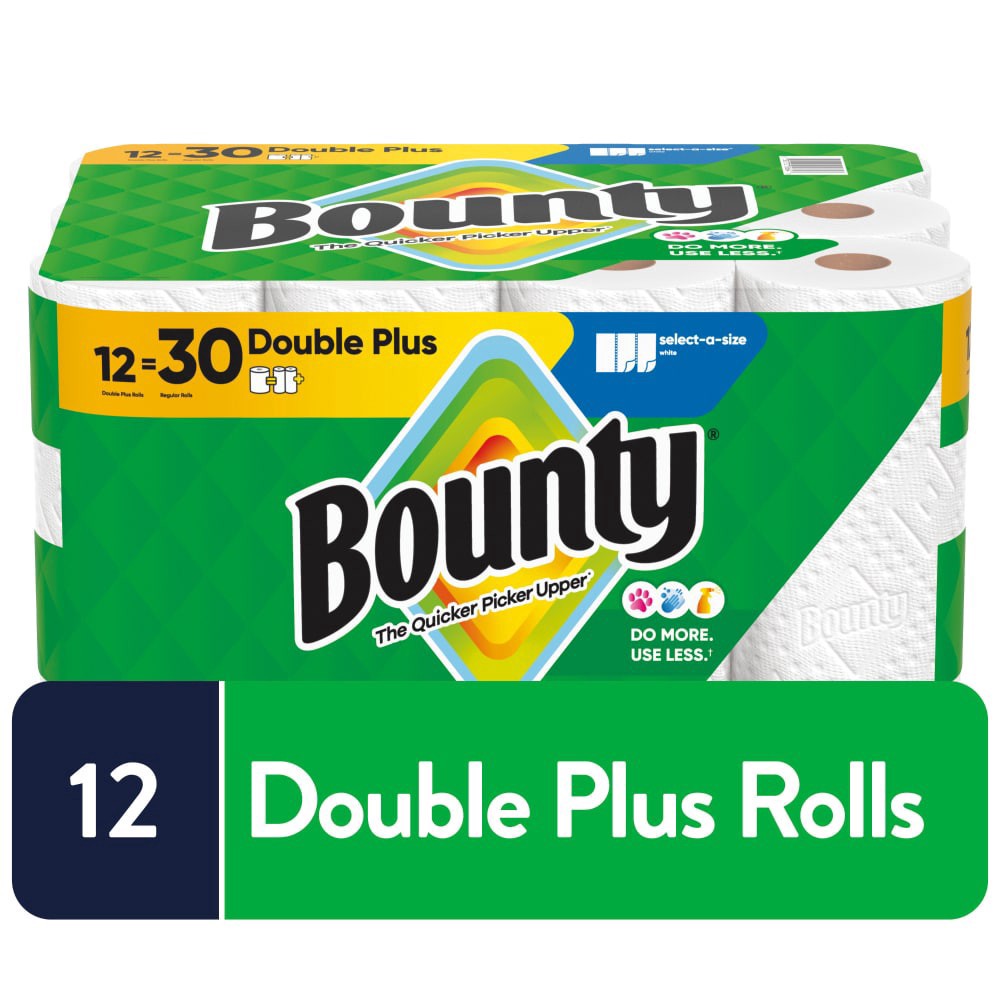 Bounty Paper Towels Select-A-Size White, 12 Double Plus Rolls, 103 Sheets Per Roll