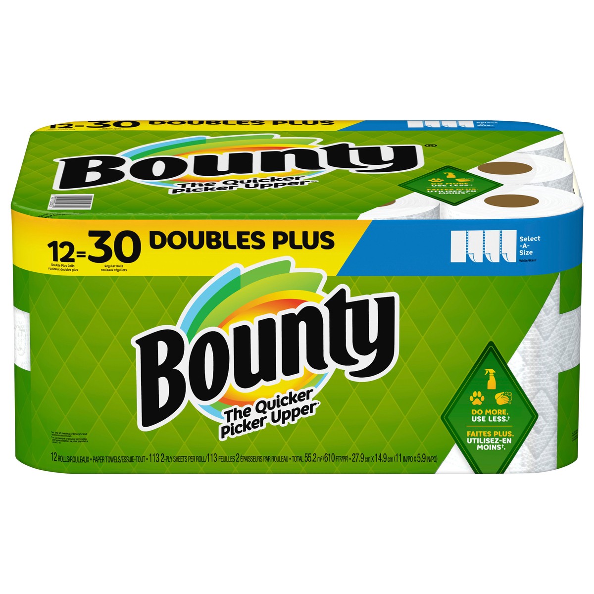 Bounty Select-A-Size Paper Towels, 12 Double Plus Rolls, White, 113 Sheets Per Roll