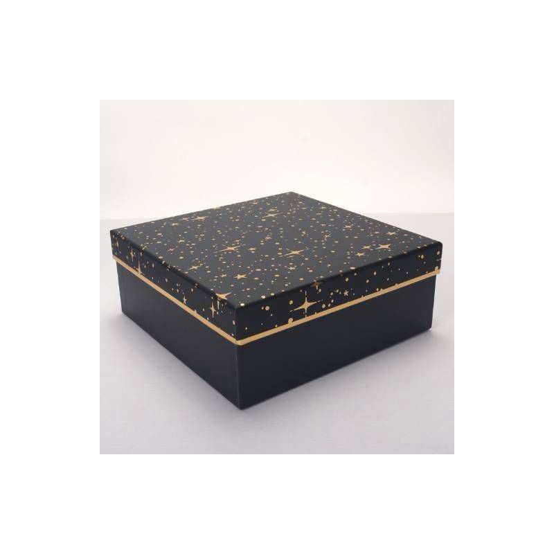 This stylish box features a classic mix of shimmering gold stars and playful golden polka dots on the lid, creating a timeless pattern that adds charm and sophistication to your presentation. The slee…