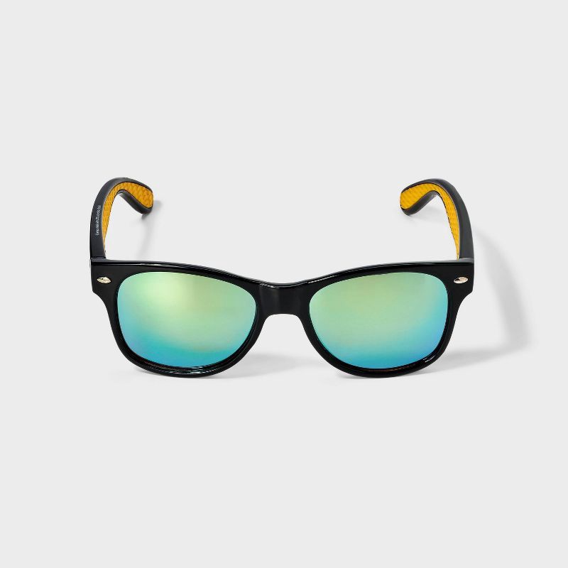 These stylish sunglasses from Cat & Jack are perfect for kids who love a touch of adventure. With a sleek black frame made from recycled plastic, they offer both style and sustainability. The green po…