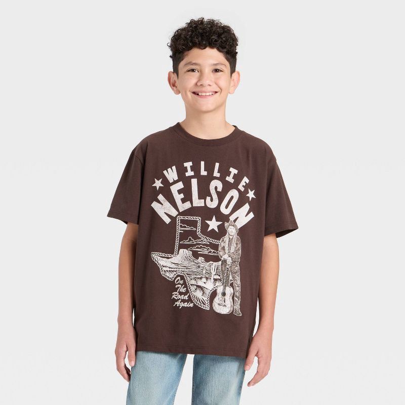 Celebrate classic country style with the Boys' Willie Nelson Oversized Short Sleeve Graphic T-Shirt in Dark Brown. This laid-back tee features a bold graphic of the legendary singer, perfect for young…