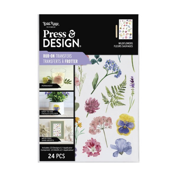 Brea Reese® Press And Design Rub On Transfer Wildflowers, With Applicator, Set Of 23 Pieces
