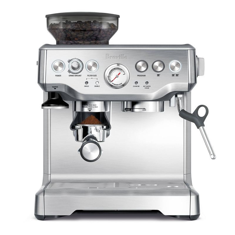 Breville Stainless Steel Barista Express Espresso Machine Light Silver BES870XL: 15 Bars Pressure, Milk Frother, Grinder