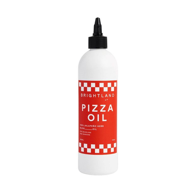 - Add a savory kick to your favorite recipes with Brightland's Pizza Oil. This hot and herbaceous oil is made with premium cold-pressed California Extra Virgin Olive Oil flavored with herbs and spices to make anything taste like your favorite neighborhood pizza shops best. Perfectly blended for drizzling on deep dish or dressing up delivery. Packaged in a 12 fl. oz. fully-recyclable, BPA-free plastic bottle.