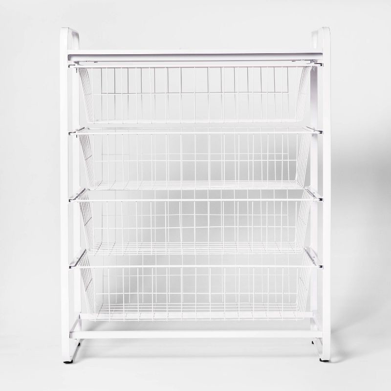 Organize your clothes and shoes with ease with this 4-Drawer Metal Storage Organizer from Brightroom™. This metal closet organizer brings practical storage to your space. It features a vertical design…