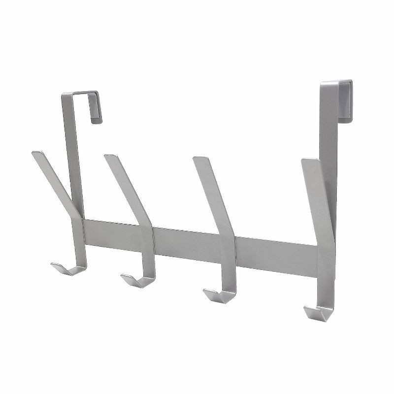Create extra hanging storage space with this Heavy-Duty Over-The-Door 4-Hook Rail from Brightroom™. The heavy-duty metal hook rail is designed with a powder-coated matte gray finish that matches easil…