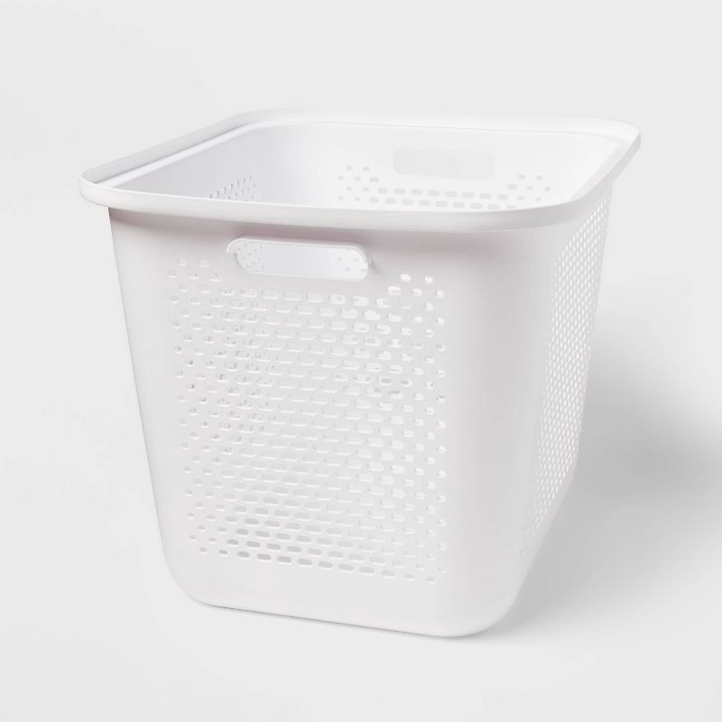 The Large Decorative Plastic Bin with Cutout Handles from Brightroom™ gives you ideal storage for any room of the house. The bin is perfectly sized to store accessories, linens, crafting supplies and …