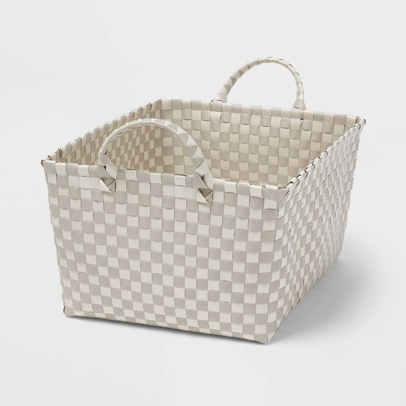 Tidy up in style with this Large Woven Plastic Basket from Brightroom™. This large plastic basket is designed in a rectangular silhouette, making it ideal for stashing small household essentials, remo…