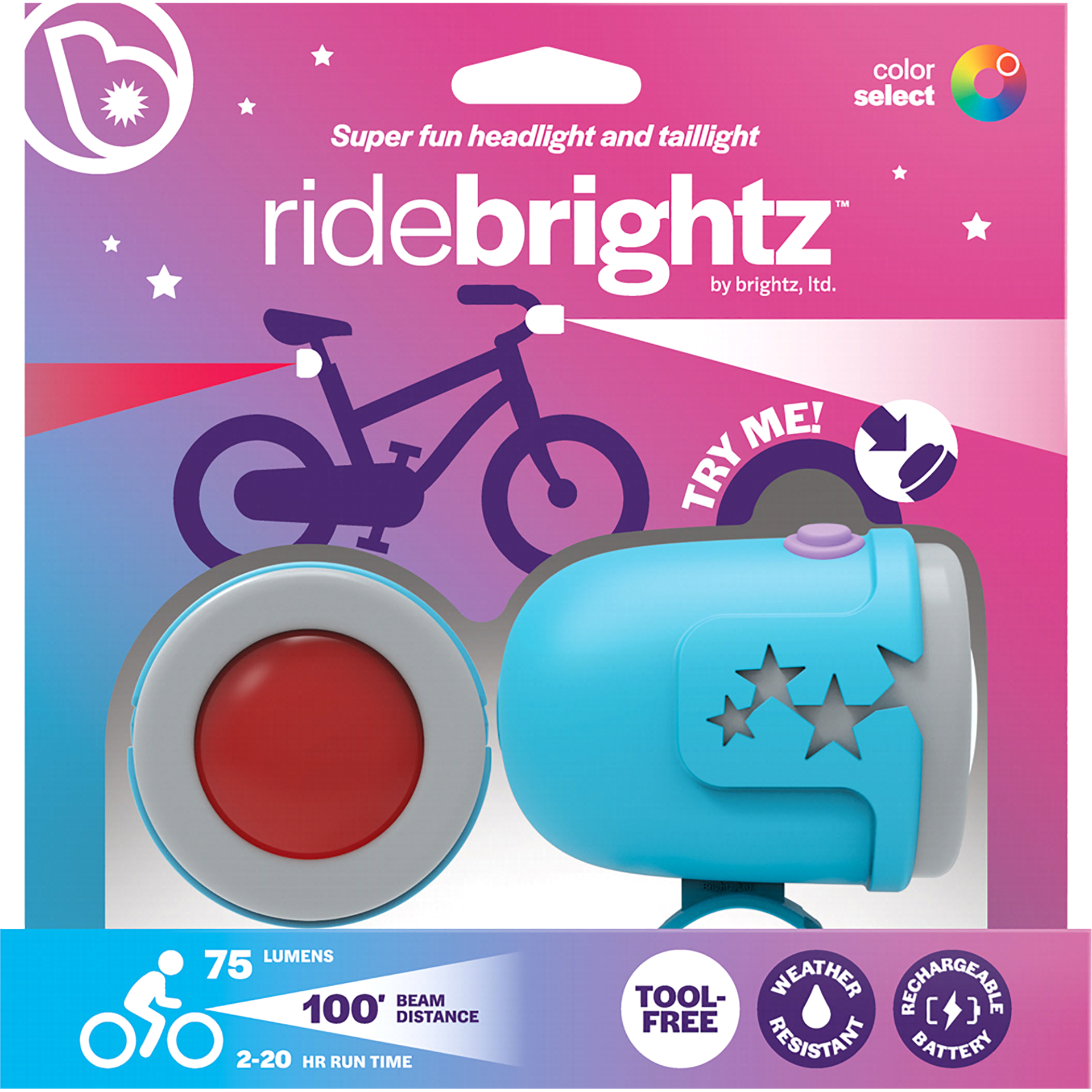 Ridebrightz brings fun to boring old headlights. Each white headlight has 2 brightness levels and a flashing mode. Around the white light is a ring of color changing light. Let it cycle through the ra…