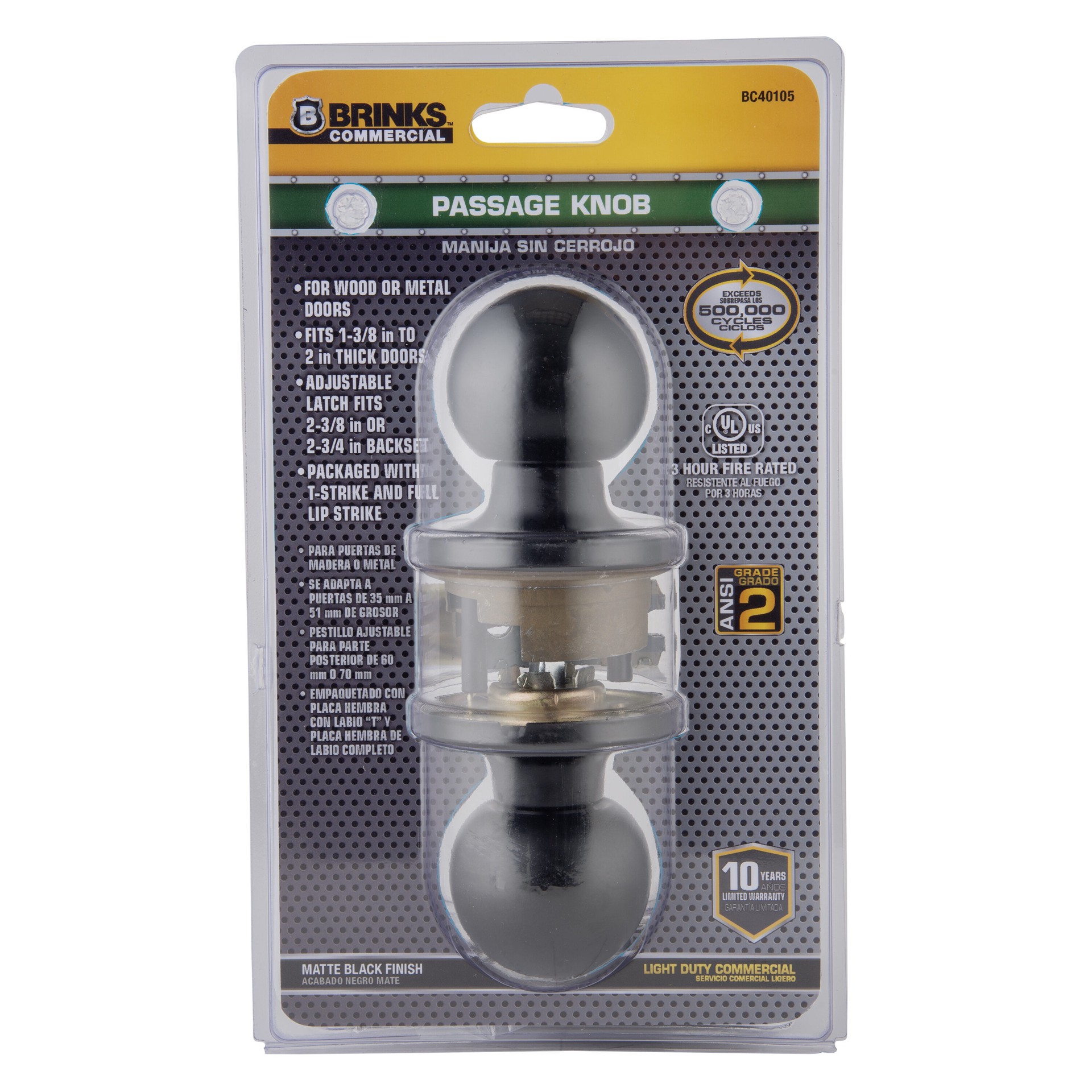 BRINKS COMMERCIAL Light duty Commercial Knob Matte Black Interior or Hall/Closet Passage Door Knob