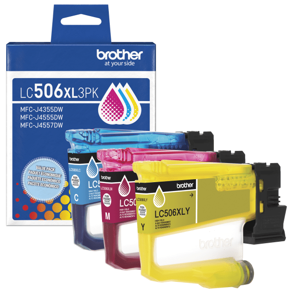 slide 8 of 8, Brother LC506XL3PK Cyan, Magenta, and Yellow High Yield Ink Cartridges, 3-Pack, 1 ct