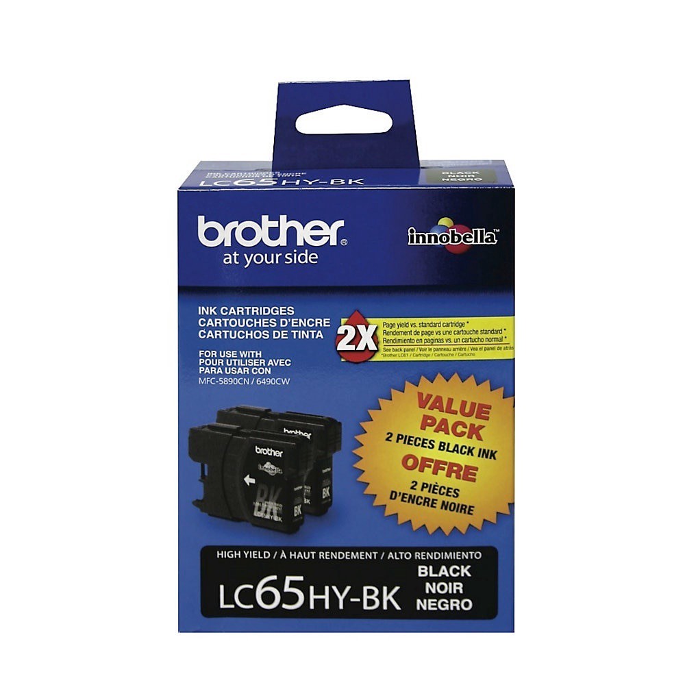 Brother Lc65Hy-Bk, High-Yield Black Ink Cartridges, Pack Of 2