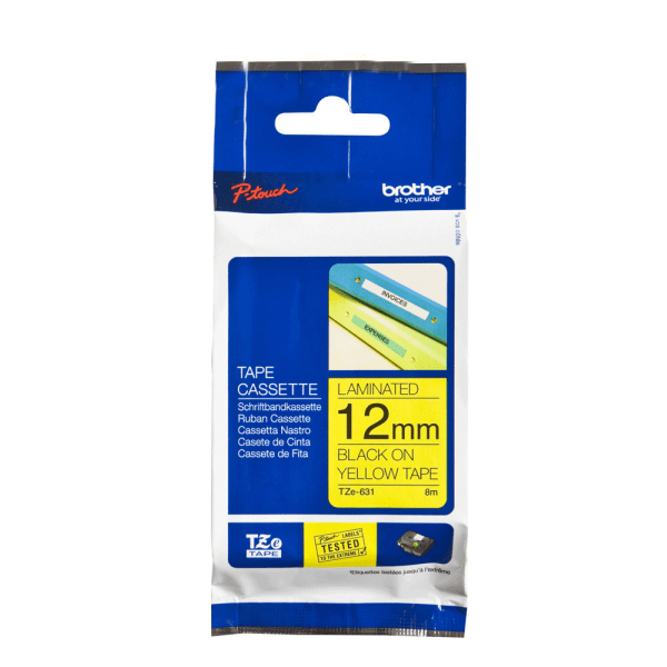 slide 3 of 3, Brother P-Touch Tze Tze631 Label Tape - 15/32" Width X 26 1/5 Ft Length - Rectangle - Blue, Yellow - 1 Pack, 1 ct