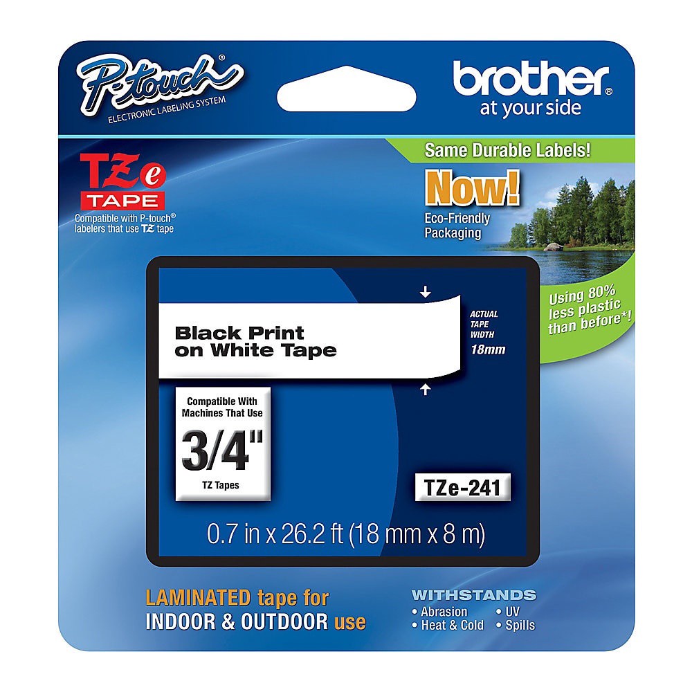 Withstands abrasions, UV and spills For P-touch Labelers using TZ or TZe tapes Laminated for indoor and outdoor use Versatile for labeling in heat and cold Black on white background Brother TZe-241 bl…
