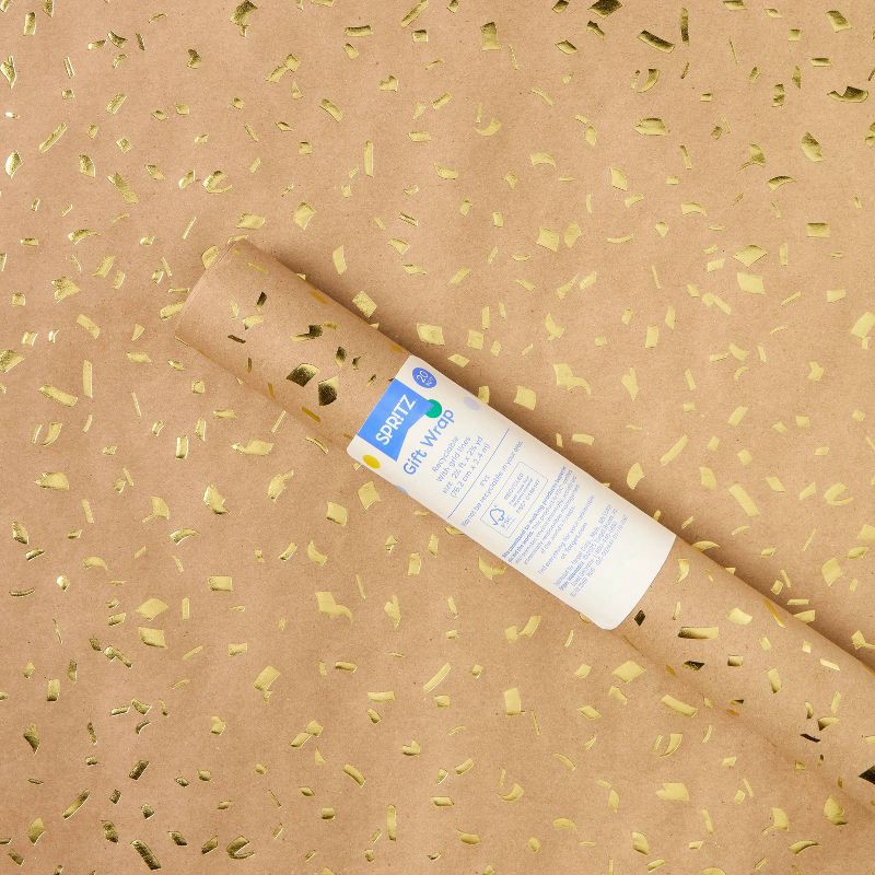 Present your gift with excitement by wrapping it in the Brown Gold Foil Speckled Gift Wrap from Spritz™. Ideal for all special occasions, the color scheme of this patterned wrapping paper enhances the…