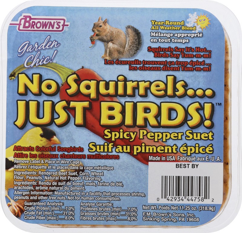 Rendered Beef Suet, Corn, Wheat Flour, Peanuts, Natural Hot Pepper Flavoring.